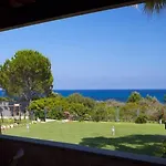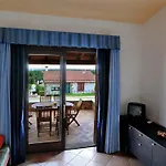 Residence Il Borgo Di Porto Coralloホテルは家具付きバルコニ-付きの部屋を提供しています. 部屋からは庭園の景色が一望できます.